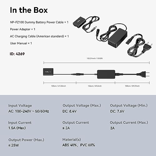 Ampia Compatibilità: Questa batteria fittizia NP-FZ100 sostituisce per Sony NP-FZ100 e funziona con A9, A9II, A7R III, A7R IV, A7R V, A7 III, A7S III, A7R II, A7S II, A7C, A1, A6700, A6600.