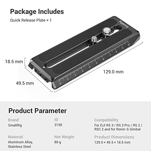 SMALLRIG Piastra a Sgancio Rapido (Per Manfrotto Style) per DJI RS 3 / RS 3 Pro/RS 2 / RSC 2 / Ronin-S - 3158B