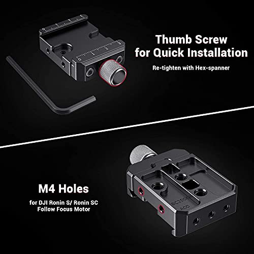 【Facile da montare】Il clamp si collega alla piastra della videocamera del gimbal tramite due viti da 1/4” sia in direzione verticale che orizzontale. Inoltre, include thread M4 per DJI Ronin S / Ronin SC Follow Focus Motor.