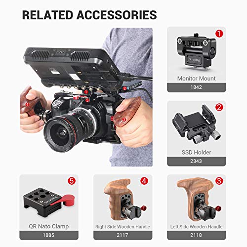SMALLRIG Rosette Wooden Handle Grip(Lato Destro) con Quick Release NATO Clamp per Camera Cage - 2117
