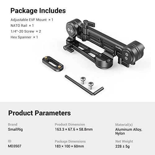 SMALLRIG Supporto EVF regolabile con NATO Clamp MD3507 è progettato per montare un monitor e altri accessori su un kit fotocamera, consentendo il libero riposizionamento degli accessori in una varietà di scenari di ripresa.