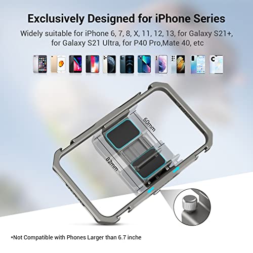 Con fori di montaggio multipli: viene fornito con fori filettati anti-torsione da 1/4"-20 e accessori di supporto per scarpe fredde come maniglia laterale 3838, treppiede BUT2664, microfono 3452 e luce LED 3286. Rendi la videografia del tuo smartphone più professionale.