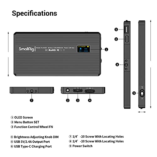BATTERIA AL LITIO 3800 mAh: La batteria ricaricabile integrata può durare più di 90 minuti in modalità di consumo energetico massimo (luminosità 100% CCT 8500K) e viene caricata rapidamente tramite un cavo USB Type-C. Può anche fungere da power bank che carica il telefono tramite una porta USB incorporata quando è spento. NOTA: il tempo di utilizzo più lungo varia leggermente a seconda delle abitudini di utilizzo e dell'ambiente di lavoro.