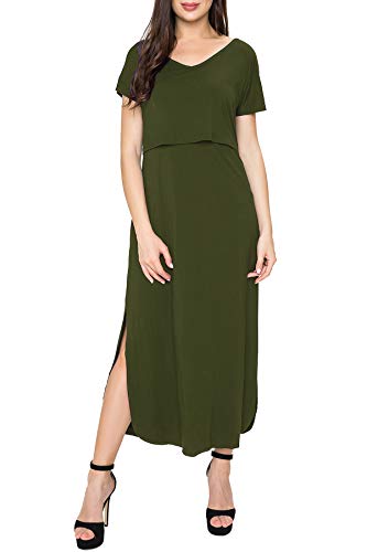 Smallshow Abito Allattamento Donna Lungo Split Vestiti Premaman Eleganti Estivi Army Green S