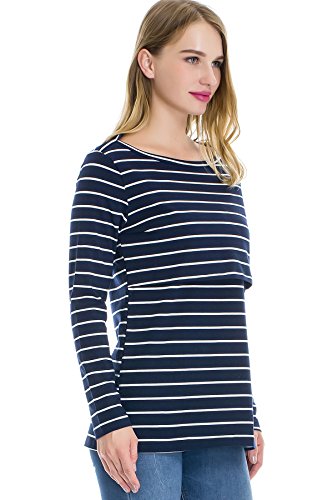Smallshow Top a Righe da Allattamento per Donna Camicia per Allattamento a Maniche Lunghe a Strati Deep Blue 2XL
