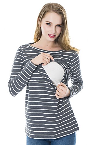 Smallshow Top a Righe da Allattamento per Donna Camicia per Allattamento a Maniche Lunghe a Strati Deep Grey XL