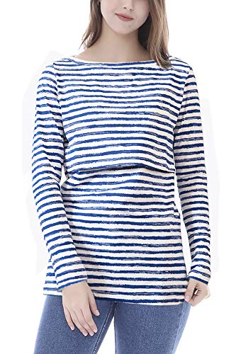 Smallshow Top a Righe da Allattamento per Donna Camicia per Allattamento a Maniche Lunghe a Strati