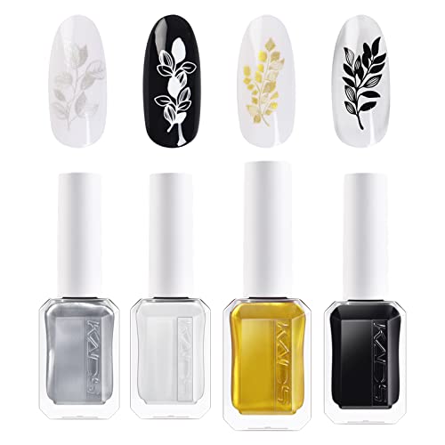 Set di 4 smalti per unghie, 10 ml, stampati, in gelatina, color oro, argento, metallizzati, pigmento per unghie laccato, design