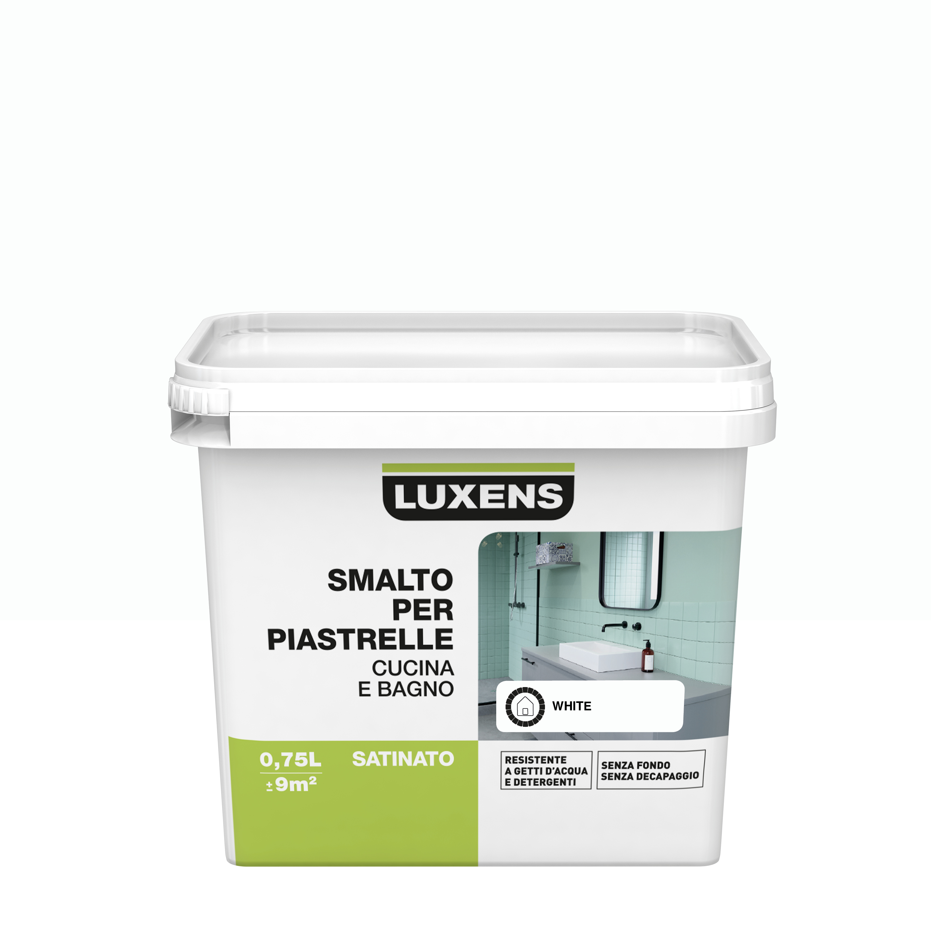 Indicato per piastrelle, adatto per 9 m². Ideale per rinnovare piastrelle verticali, mobili e piani di lavoro, radiatori.. Una latta da 0,75 L è indicata per dipingere 9 m² con 2 mani. Ideale per piastrelle data la sua elevata copertura. Impermeabile all'acqua. Lavabile con detergenti. Facile da applicare, direttamente sul supporto da verniciare perché non necessita di fondo. Rende la superficie lavabile con spugna con o senza detergenti