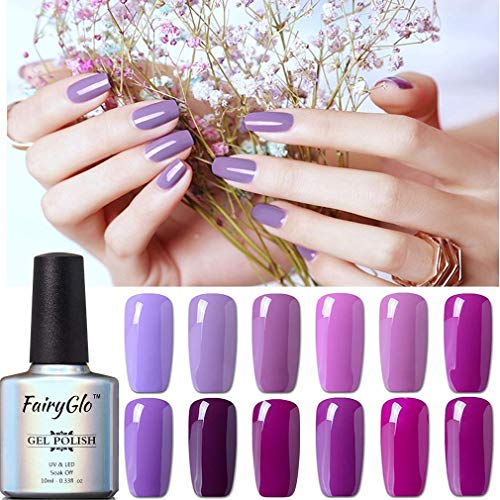 Smalto Semipermanente per Unghie UV LED Colori Porpora Kit per Manicure Ricostruzione Unghie Smalti Semipermanenti Soakoff 12pz 10ml di Fairyglo-Porpora Kit 005