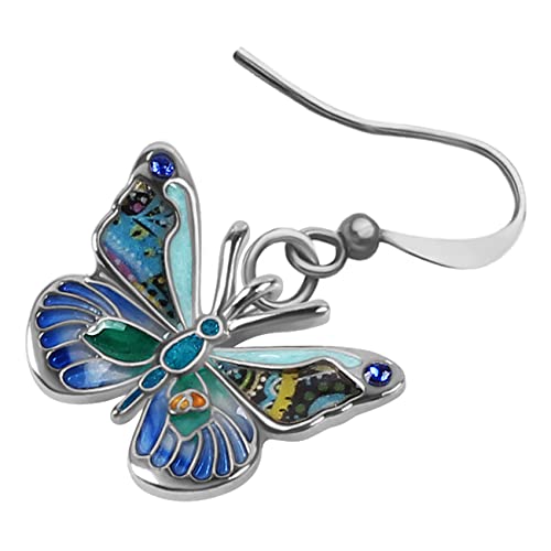 Smalto lega strass farfalla orecchini Dangle moda insetto gioielli per le donne ragazze fascino regalo (Blu)