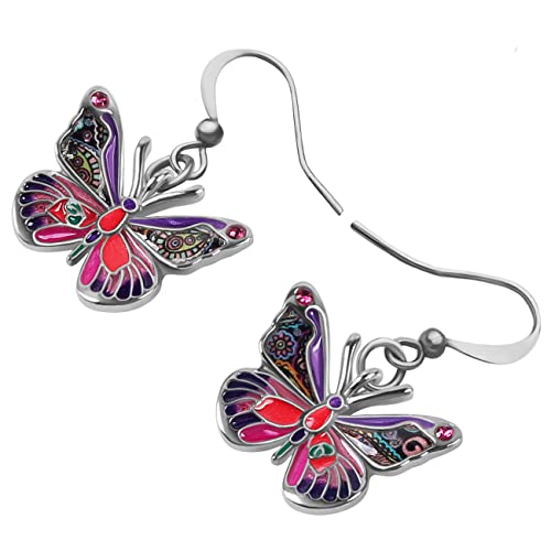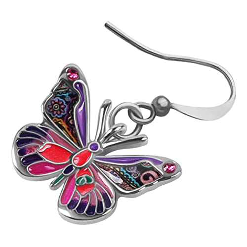 Smalto lega strass farfalla orecchini Dangle moda insetto gioielli per le donne ragazze fascino regalo (Viola)