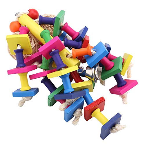 Design speciale - Il design del giocattolo per uccelli è nuovo e unico. I blocchi di legno colorati, le perline e la palla intrecciata li stimoleranno mentalmente, così affineranno la loro forza di volontà. Lascia che gli uccelli siano impegnati a masticare, a rendere meno distruttivi, a dare loro una buona cura del dentista.