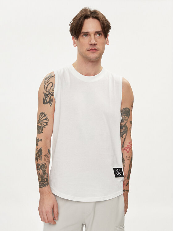 Calvin Klein Jeans Smanicato Monologo Badge J30J325529 Bianco Regular Fit