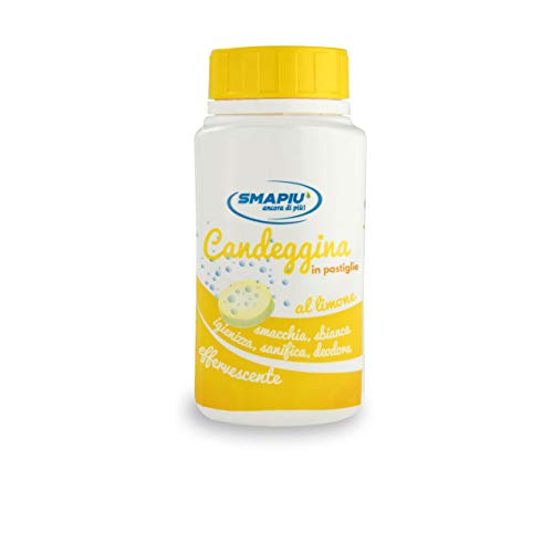SMAPIU' Candeggina in Pastiglie Luxury - effervescente, Extra igienizzante - 1 flacone da 40 pastiglie da 4 g, profumata al Limone