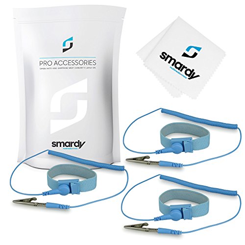 Smardy 3x Braccialetto per la protezione ESD riutilizzabile antistatico con cavo di messa a terra a spirale ruotabile di 360° e morsetto a coccodrillo - colore blu