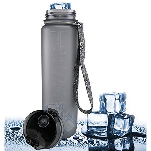 Smardy Tritan Bottiglia Di Acqua Grigio - 1000 Milliliter - In Plastica Priva Di Bisfenolo BPA Free - Facile Da Aprire - Rispettosa Dell'ambiente - Riutilizzabile
