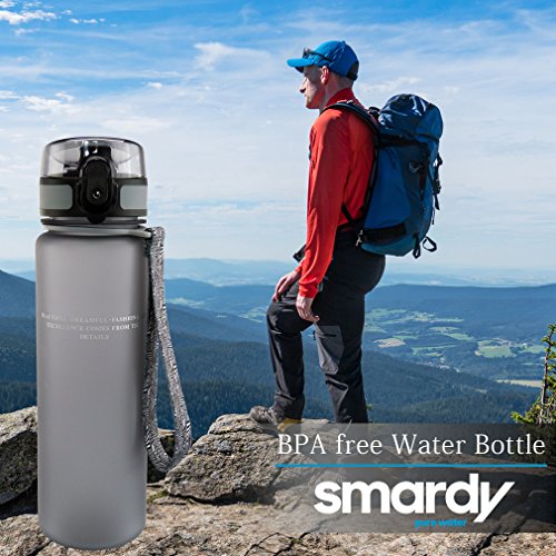 Smardy Tritan Bottiglia Di Acqua Grigio - 500 Milliliter - In Plastica Priva Di Bisfenolo BPA Free - Facile Da Aprire - Rispettosa Dell'ambiente - Riutilizzabile