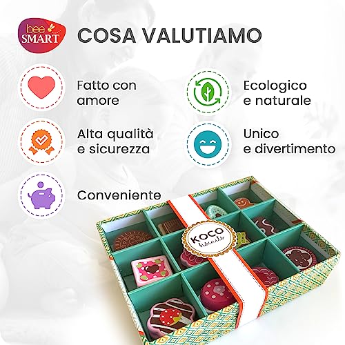 Bee SMART Cassetta di Legno di Biscotto - Scatola di Biscotti Set (12 Pezzi) - Giocattolo Playfood per Bambini in Legno - Bambini Finti Play Food