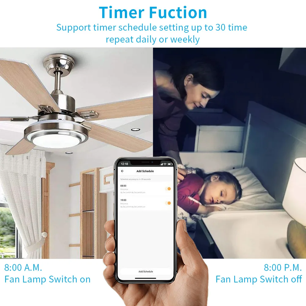 Tuya Smart Life WiFi Ceiling Fan Light Switch EU Type Remote Control Works with Google Home Amazon Alexa App Timer Smart Home