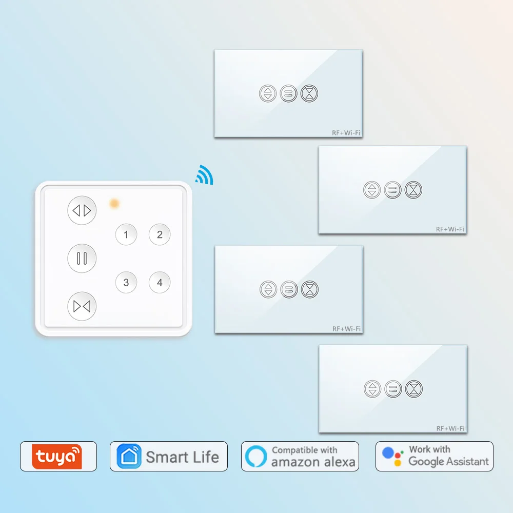 Tuya Smart Life US Curtain Switch Remote Control 4 Channel Blinds Engine Roller Shutter RF+WIFI App Timer Google Home Alexa Echo