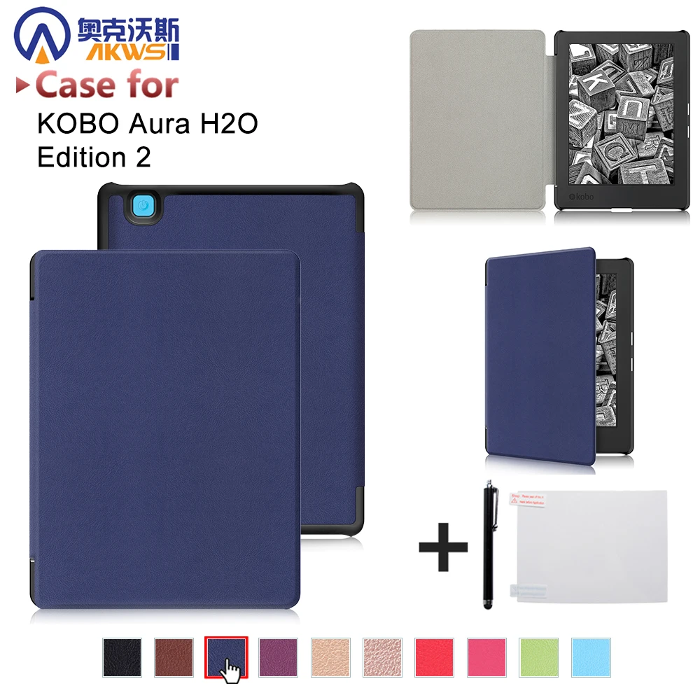 Smart Case for Kobo Aura H2O Edition 2, 6.8 inch Waterproof Ereader Magnetic Cover, Slim Leather Funda Capa