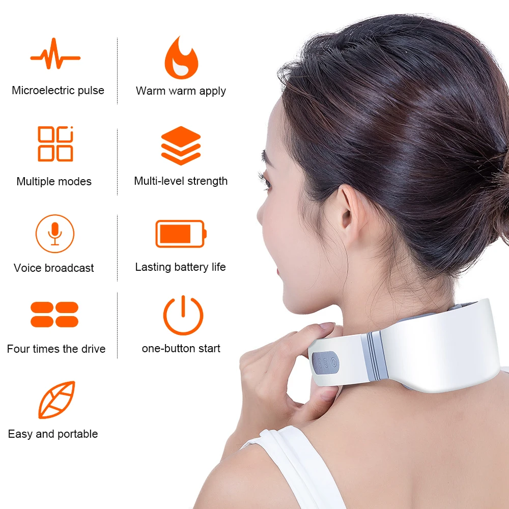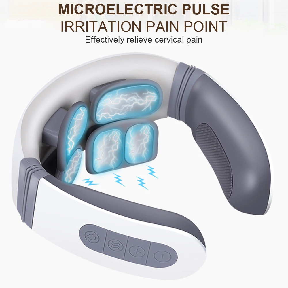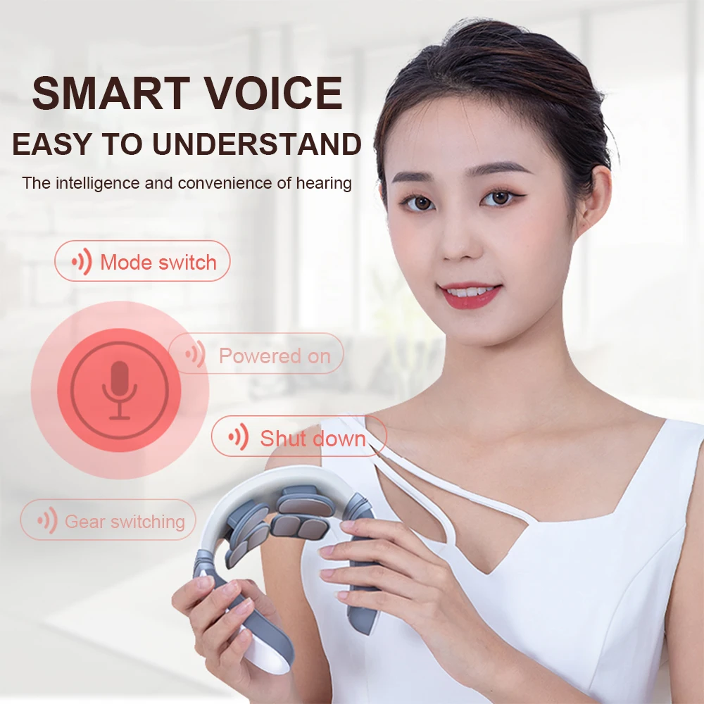 Smart EMS Electric Neck Massage 5 Modes Magnetic-Pulse Cervical Massager Intelligent Voice Rechargeable 6 Heads 12 Gears Massage