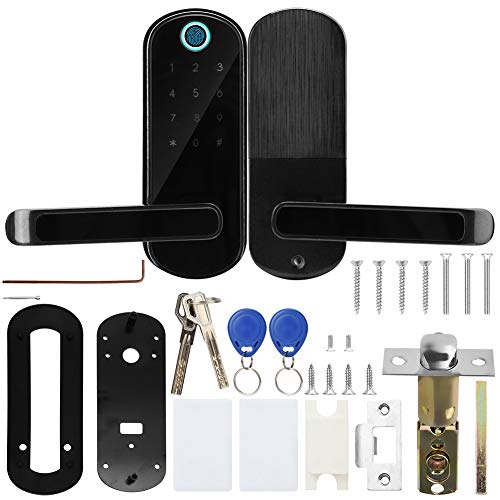 【Serratura intelligente senza chiave 5 in 1】 Questa serratura intelligente Cinque modi per aprire la porta: Bluetooth (entro 0-15 metri) + riconoscimento dell'impronta digitale + carta + password + chiave meccanica. Supporta lo sblocco confuso per prevenire il voyeurismo. Supporta il controllo remoto APP, la password temporanea condivisa e la password dinamica.