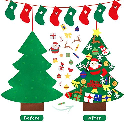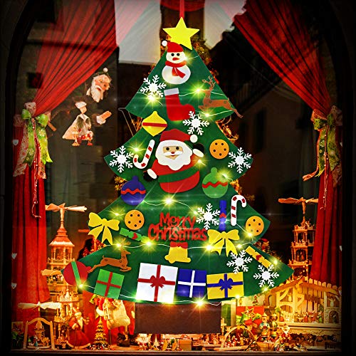 Smart Nice Feltro Albero Natale in Velcro,3.28ft della Feltolta di DIY con 33 Ornamenti Staccabili Regali di Natale Nuovo Anno Decorazione della Parete del Portello dei Bambini (Felt Christmas Tree)