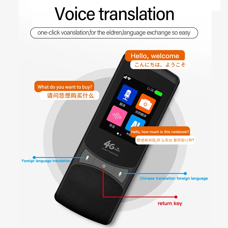 Smart AI Instant Voice Photo Scanning Translator 2.4 Inch Touch Screen Wifi Support Offline Portable Multi-language Translation