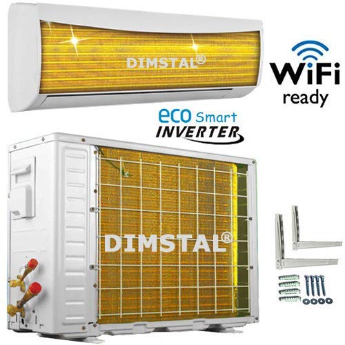 Estremamente potente e molto silenzioso ed economico. Impianto Full Inverter DC - Originale DIMSTAL - Golden-Fin- Effetto Lotus - Intelligent - Risparmio energetico - Antibatterico e durevole. Funziona con 230 V di tensione domestica. Classe di efficienza energetica: Raffreddamento/riscaldamento = A++/A++ DC Full Inverter: la velocità di funzionamento del motore compressore inverter viene regolata in modo continuo e continuo in base alla capacità del sistema richiesta.