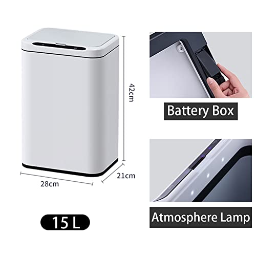 Smart Kitchen - Pattumiera con coperchio, in acciaio inox, 15 litri, automatica, impermeabile, rettangolare, con sensore di movimento, cestino per la spazzatura per soggiorno, ufficio, camera da letto
