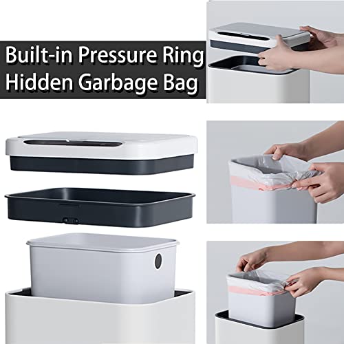 Pattumiera con chiusura ammortizzata: questo grande coperchio intelligente per bidone della spazzatura da cucina è rimovibile e comodo da mettere e togliere il sacco della spazzatura. Un anello staccabile può fissare saldamente il sacchetto della spazzatura e non lo farà scivolare via, e il coperchio del bidone della spazzatura è silenzioso e lento da chiudere, ultra silenzioso senza alcun rumore, anche se si getta spazzatura nel cuore della notte, non disturberà il riposo delle tue famiglie.
