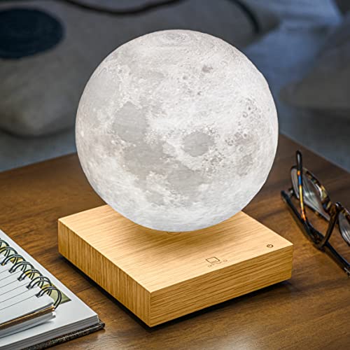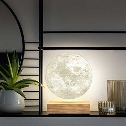 Base in frassino sbiancato da 12 x 12 cm, altezza 3 cm. Luna in PLA stampata in 3D con un diametro di 14 cm.