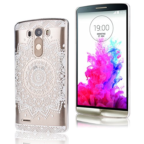 Smart Legend bianco fiore 3D Relief Crystal clear Custodia per LG G3 pc rigido colore trasparente con Pure Bliss immagine caldo