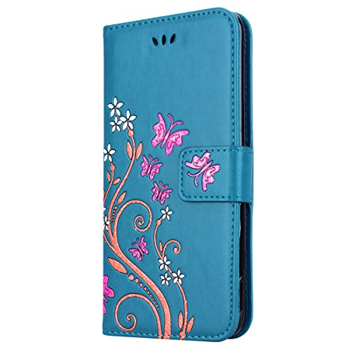 SMART LEGEND Flip Cover iPhone 5C, Custodia Chiusura Magnetica Retro Fiore Modello Design per iPhone 5C, Book Style Internamente Silicone TPU Custodie Case in pelle Protettiva [Proteggere il Cellulare da Graffi, Ammaccature e Altri Danni Quotidiani] - Blu