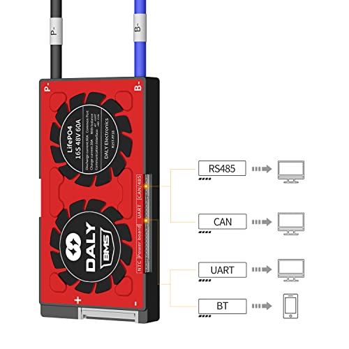 Daly Smart BMS 16S LiFePO4 48V 60A, scheda di protezione batteria, con bilanciamento, NTC, Bluetooth, UART, CAN, protezione da sovraccarico ecc. Per bici elettriche, auto da turismo