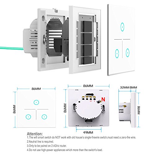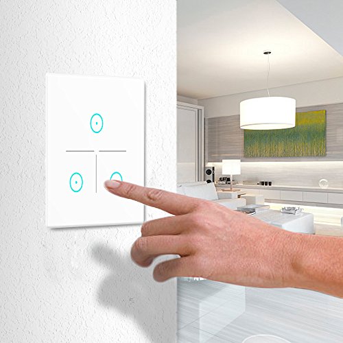 WiFi Smart Light Switch, LYASI Touch Screen in vetro temperato, interruttori della luce WLAN Wall, lavoro con Alexa e Google Home, telecomando wireless, funzione di temporizzazione, protezione da sovraccarico, nessun hub richiesto(3 Gang)