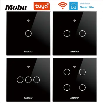 Mobu tuya Wifi Smart light touch switch,Touch Panel Voice Control Wireless Wall Switches Remote with Alexa Google Home 1234 Gang
