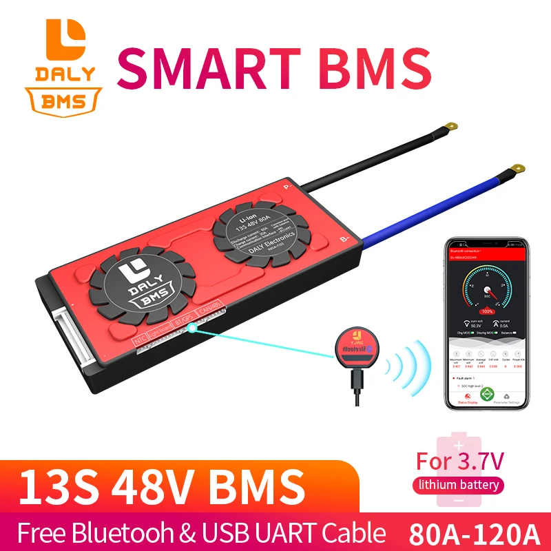 Smart BMS Li ion 3.7V 13S 48V lithium ion battery pack 80A 100A 120A 485 to USB device for Solar Panel
