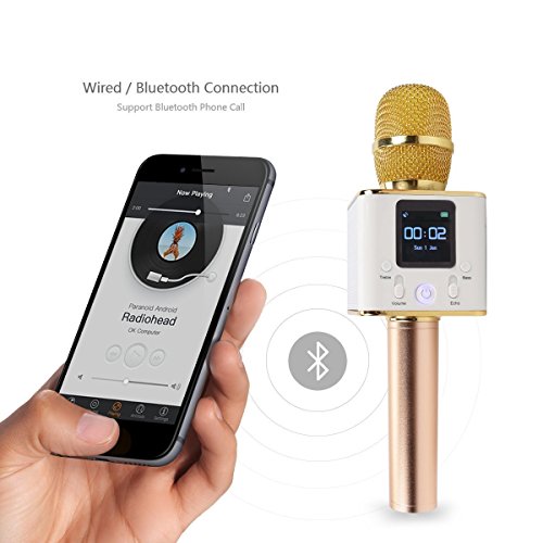 【Portable Wireless Microphone】Karaoke & Music Streaming Speaker System - Compact, Portable & Powerful - Q9 Connect with Bluetooth, compatible with various Singing Applications, Built-in Rechargeable Battery. A good Christmas' gift for your family and friends.