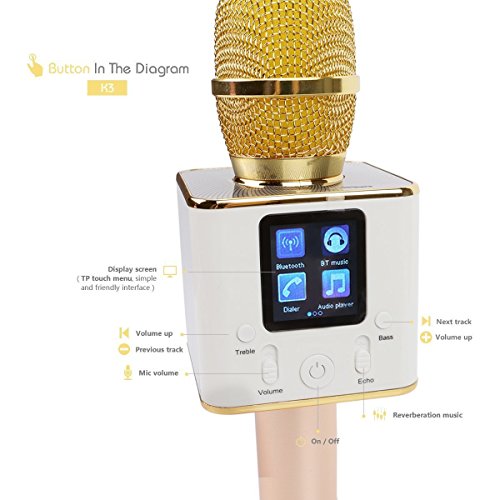 【Portable Wireless Karaoke Microphone】Handheld Condenser Microphone with Speaker for iPhone/iPad/iPod/ Samsung Sony HTC Lumia Smartphone. Great for showing, ceremony, outdoor wedding, seminars and karaoke parties.