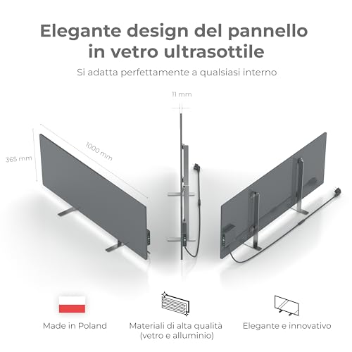 ✅ SOTTILI E SALVASPAZIO: Questo pannelli infrarossi per riscaldamento si integra bene con qualsiasi tipo di arredamento e rappresenta il complemento perfetto per la camera da letto, il bagno, l'asilo nido o la cucina, nonché un moderno riscaldatore per ufficio o officina. Con un design sottile, è ideale per una stanza piccola dove lo spazio è limitato. Si può installare in verticale o in orizzontale, a seconda delle tue