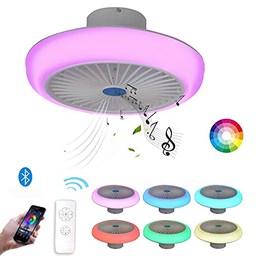 VOMI LED Smart Plafoniera Ventilatore da Soffitto con Luce e Telecomando Silenzioso Dimmerabile RGB Colorata Musica Ventilatore da Soffitto Lampada Altoparlante APP Bluetooth Bambini Piccolo Fan 72W