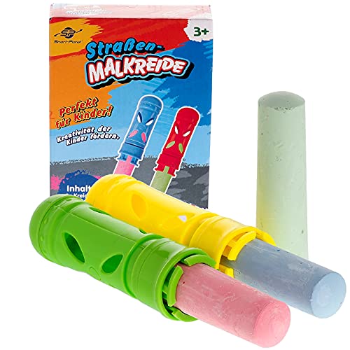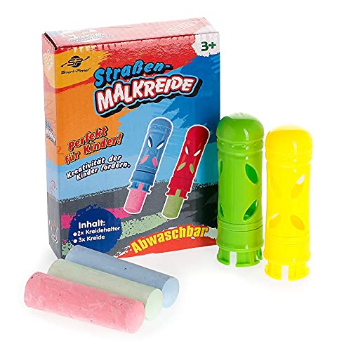 Smart-Planet Set di gessetti da strada con supporto, 3 gessetti da pittura stradale + 2 supporti - gesso colorato per dipingere all'aperto - lavabile - per strada e cortile