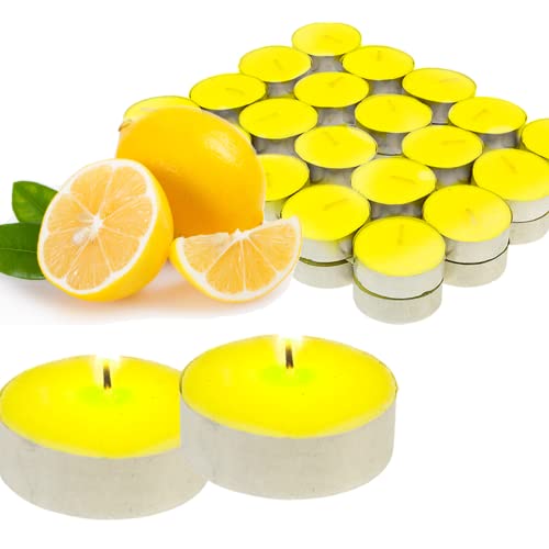 Smart-Planet Lemella - Candeline profumate alla citronella, 40 pezzi, profumate primaverili con aroma di agrumi, in custodia in alluminio, colore: Giallo