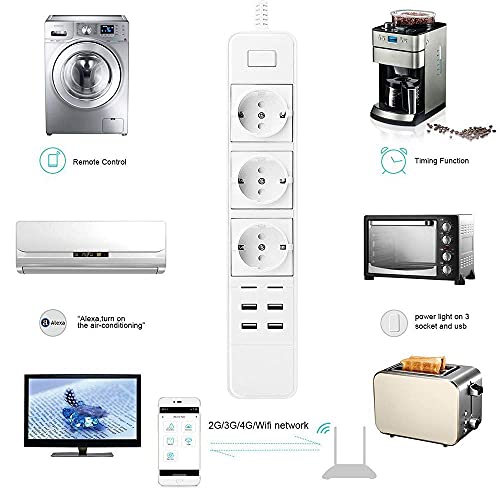 Smart Power Strip con 3 prese AC 4 Porte USB Wifi Surge Protector Presa spina universale Controllo individuale con Alexa/Google Home/IFTTT Timer
