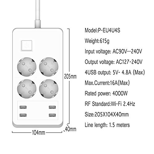 Smart Power Strip Wifi Surge Protector Controllo vocale con Alexa e Google Home, 4 prese CA 4 USB, nessun hub richiesto Presa Smart Surge Protector Presa