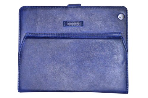 Smart Range - Custodia pregiata a portafoglio, in vera pelle di agnello lavata, per Apple iPad 2 3 4, blu