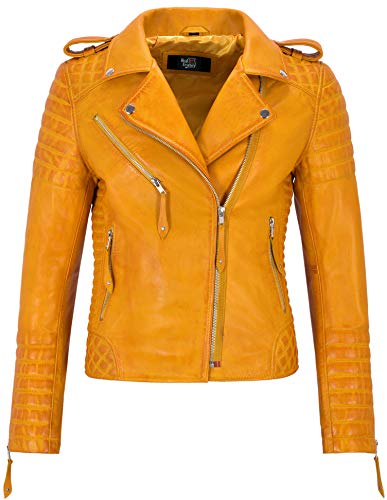 Smart Range Leather Giacca in Pelle da Donna Classico Stile da Motociclista 100% Vera Pelle Napa 2260 (10 for Bust 78cm, Yellow)